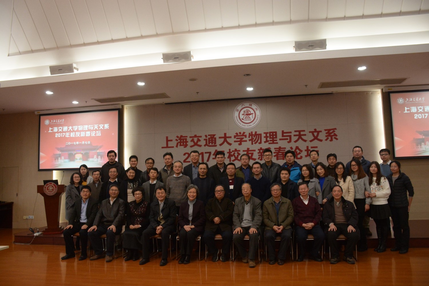 紅梅含苞傲冬雪,綠柳吐絮迎新春。2017年1月7日,物理與天文學院2017年校友新春論壇在上海交通大學閔行校區新行政B樓418會議室舉行。上海交通大學原黨委副書記蔣秀明、原黨委副書記陶愛珠、校友會理事及班級聯絡人、物理與天文學院領導及退休教師代表共50余人歡聚一堂,回顧校友工作進展,傾聽廣大校友心聲,展望雞年新氣象。董事長丁榮作為校友代表出席了本次論壇。
