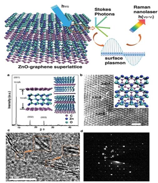深圳大學(xué)阮雙琛教授團隊采用空間限域生長法合成了一種新型石墨烯基超晶格材料,這種石墨烯基超晶格可以在從可見光到近紅外光波段較寬的波長范圍激發(fā)出表面等離子體,光激發(fā)該超晶格材料可以得到波長可調(diào)的拉曼納米激光。該拉曼納米激光具有無閾值、可室溫操作、激光波長可調(diào)、激光波長覆蓋范圍廣(波段從可見光到近紅外光)等特點,有望在納米光技如生物醫(yī)學(xué)成像等方面取得應(yīng)用上的新突破。有望在納米光技術(shù)如生物醫(yī)學(xué)成像等方面取得應(yīng)用上的新突破。研究成果近期以“A Thresholdless Tunable Raman Nanolaser using a ZnO–Graphene Superlattice(基于氧化鋅-石墨烯超晶格的無閾值拉曼納米激光)”為題發(fā)表在Advanced Materials上。