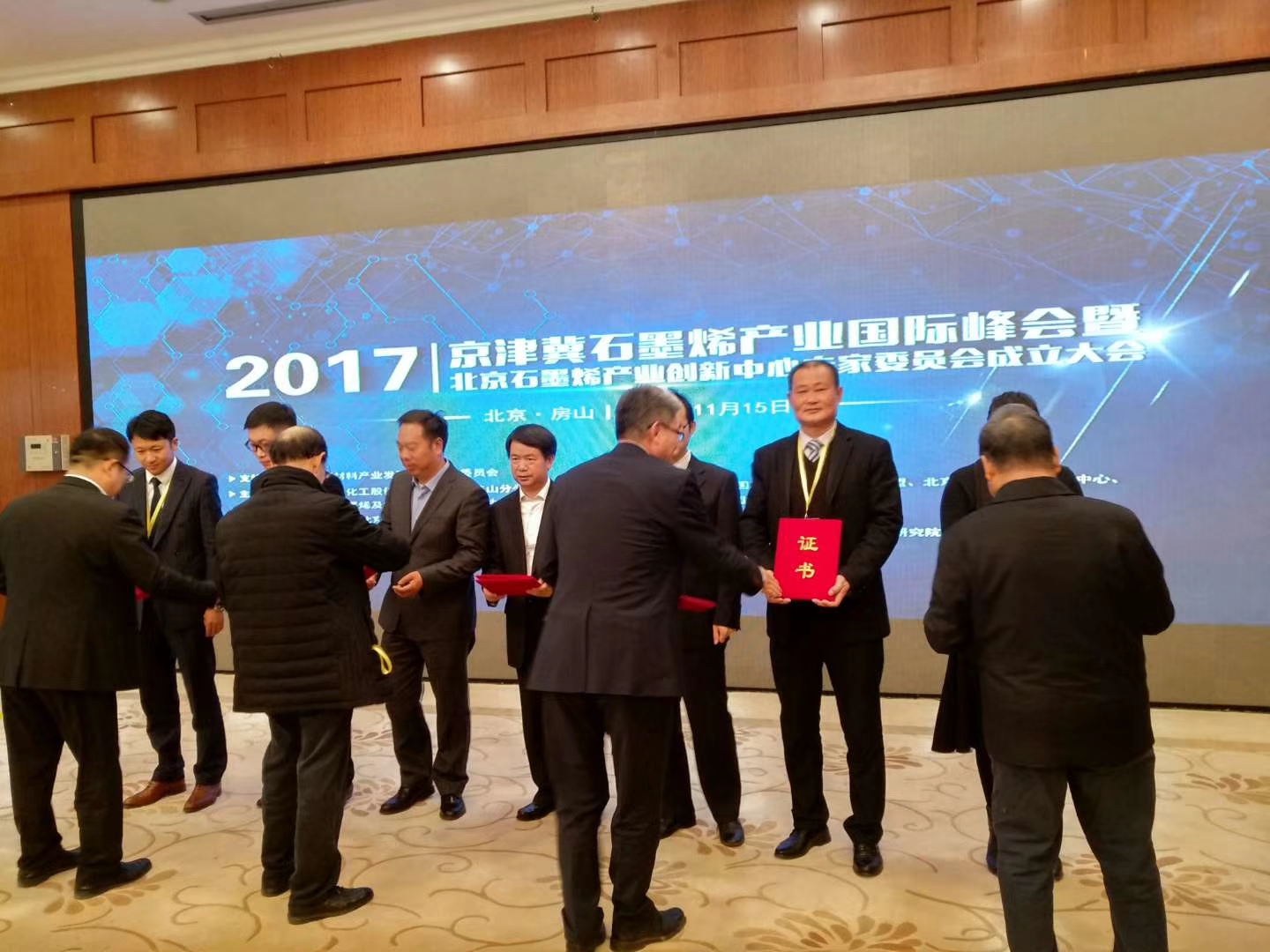 11月15日,2017·京津冀石墨烯產業國際峰會暨北京石墨烯產業創新中心專家委員會成立大會在北京房山區召開,會議由國家新材料產業發展專家咨詢委員會支持,中國石化集團北京燕山石油化工有限公司、北京石墨烯技術研究院、中國國際石墨烯資源產業聯盟、北京化工學會和北京石化新材料產業聯盟、北京石墨烯產業創新中心、北京市石墨烯及應用工程技術中心共同主辦,北京石化新材料科技產業基地管理委員會、北京石墨烯研究院、中關村石墨烯產業聯盟協辦。工信部原材料司、北京市經信委、中關村管委會、北京市房山區、中國石化集團北京燕山石油化工有限公司、中國航發北京航空材料研究院、北京石化新材料科技產業基地等領導,以及來自北京、天津、河北、內蒙古、黑龍江、山東、上海、江蘇、浙江、福建、廣東、江西、四川、重慶等省市的重點石墨烯應用企業和有關專家700余人出席了會議。泰州巨納新能源有限公司運營副總作為共建單位代表出席了本次會議。