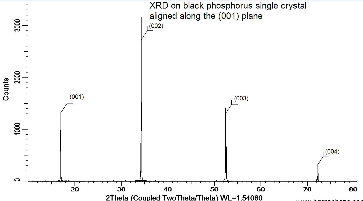 Powder X-ray diffraction (XRD) of a single crystal black phosphorus. X-ray diffraction was performed at room temperature using a D8 Venture Bruker.