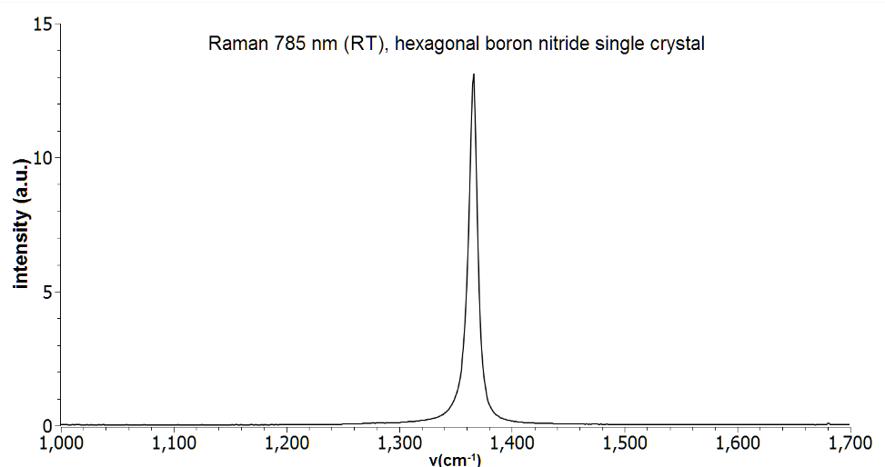 Raman spectrum of a single crystal hexagonal boron nitride (h-BN). Measurement was performed with a 785nm Raman system at room temperature.