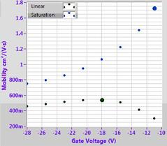 In our own tests, we have found that by using simple spin-coating onto an OTS-treated silicon substrate (using our prefabricated test chips), high mobilities comparable to the literature can be achieved (1-3 cm2/Vs). Further improvements may also be possible with more advanced strain-inducing deposition techniques.