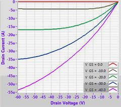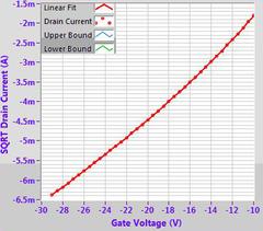 Example OFET characteristics for DPP-DTT (M313) solution processed from chlorobenzene on a 300 nm SiO2 substrate treated with OTS. Output characteristic (top left), transfer curves (top right), mobility fitting (bottom left) and calculated mobility (bottom right).