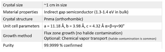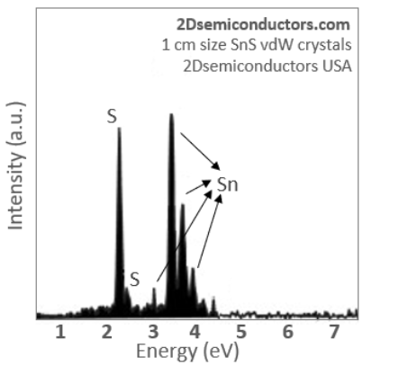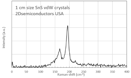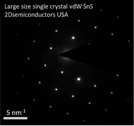 Our single crystal SnS (Tin sulfide) crystals come with guaranteed optical, electronic, and structural anisotropy. They are developed at our facilities using state-of-art flux zone techniques. hey are developed at our facilities using state-of-art flux zone techniques. Each growth takes close to three months to provide you perfected crystals that does not contain any transport agent (halide) impurities. In contrast to commonly used chemical vapor transport (CVT) technique, flux grown crystals are well known for their structural perfection and electronic/optical performance. Each crystal is highly crystalline, oriented in 0001 direction, and easy to exfoliate. Our R&D staff takes characterization data set in each sample piece to ensure structural, optical, and electronic consistency.