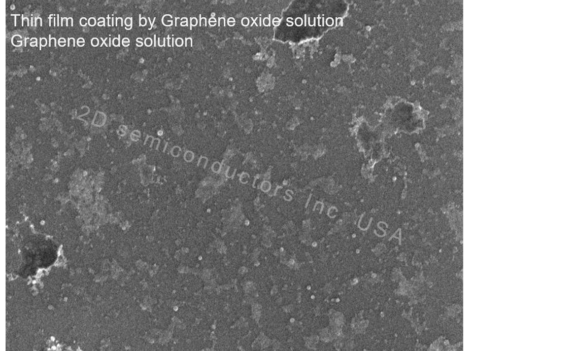 Semiconductor analog of graphene: Graphene oxide has been synthesized at our R&D facilities using modified reaction Hummer technique in water dispersant solution. Growth technique emphasizes on minimizing the defect density to yield optically active material and increasing the average grain size (flake size). Unlike many other graphene oxides, this product is optically active and is ready for 2D semiconductor research. Each growth batch has been characterized by Auger electron and x-ray photoelectron spectroscopy to determine the stoichometry; Raman, PL spectroscopy, and optical absorption for optical properties tests; AFM measurements for the atomic flatness. Product displays PL at ~2.5 eV, sub-bands at 2.2 and 2.0 eV, and broad defect lines at 1.7 eV. Raman spectroscopy measurements yield D, G, 2D, and G+D peaks. Samples come fully saturated with oxygen and the optical properties of the material can be tuned by simple heat treatment. The product is ideal for yielding monolayer onto various substrates within 2-10 minutes. The concentration of monolayer solution is fixed at 92 mg/L.
