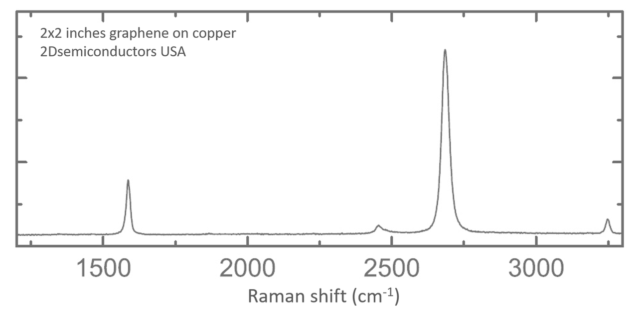 CVD Graphene sheets have been deposited onto 50 micron thick Cu foils using modified chemical vapor technique. In our method, we have paid close attention to engineering defect density and single domain sizes. Most CVD graphene chambers produce small (100nm - 1um) graphene sheets. Our process parameters have been optimized to reduce the point defect (vacancy) concentration, improve crystallinity, increase single domain size, and reduce 1D grain boundary defect density. Our CVD graphene products undergo weekly routine quality control tests to ensure the growth system is accurate and parameters are up to date. Our CVD graphene on copper foils measure 2 inches x 2 inches (~5 x5 cm in size).