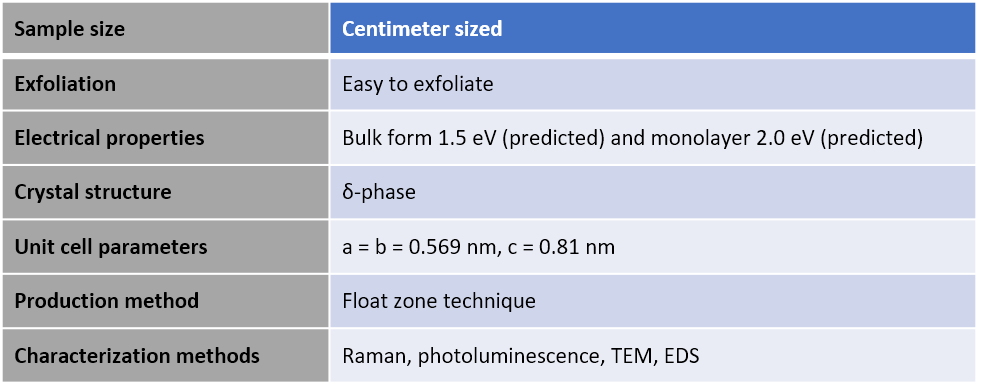 MnO2 is 2D catalytic and electronic grade semiconducting 2D material. In the bulk form, MnO2 has 1.5 eV predicted band gap while it has been anticipated to increase to 2.0 eV in the monolayer form [1]. Environmentally stable delta (layered) phase of MnO2 has been synthesized using float zone technique at centimeter scales. In its delta-phase, MnO2 crystal structure assumes R-3m phase (see images) which contains layers stacked onto each other vdW bonding. Each layer has three atomic thick arrangement consisting of O-Mn-O layers as shown in the diagram in product images. The material is environmentally stable in air, water, and different gases. Layers can easily exfoliated onto desired substrates with minimal efforts as shown in the product images. Please see our Raman spectrum and comparison to the published literature [2] in Fig2b.