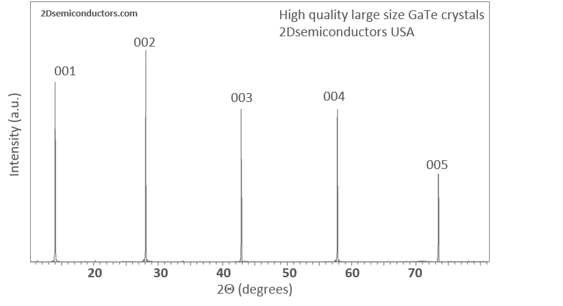 Our single crystal monoclinic GaTe (Gallium telluride) crystals come with guaranteed anisotropy, electronic, and optical grade crystal quality. They are developed at our facilities using three different growth techniques, namely Bridgman growth, chemical vapor transport (CVT), and flux zone growth, to optimize grain sizes and reduce defect concentrations. In contrast to commonly used chemical vapor transport (CVT) technique, flux grown crystals are well known for their structural perfection and electronic/optical performance. Bridgman and flux zone methods both offer similar grade qualities. Each crystal very large in size to last for years, is highly crystalline, oriented in 0001 direction, and easy to exfoliate. Our R&D staff takes characterization dataset in each sample piece to ensure structural, optical, and electronic consistency.