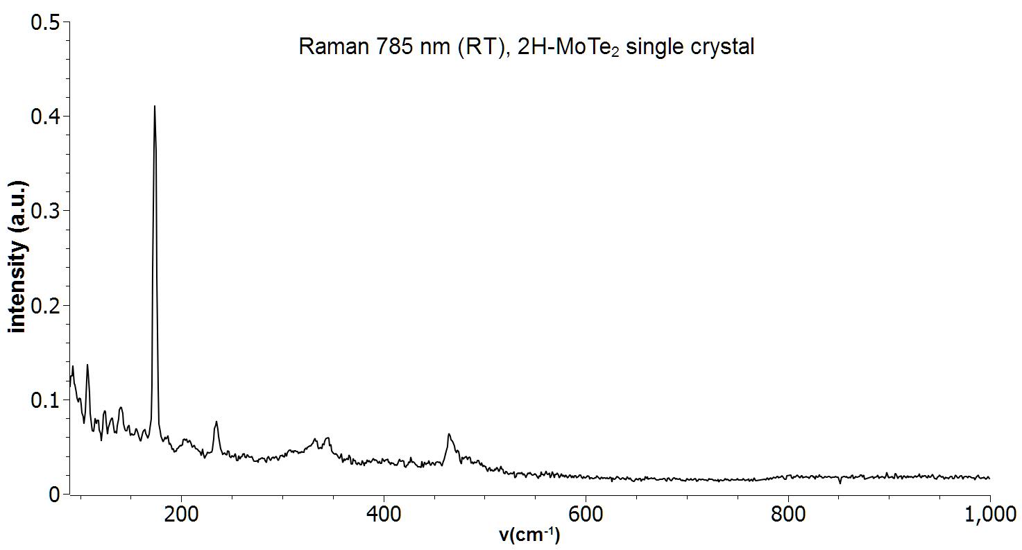 Raman spectrum of a single crystal 2H MoTe2. Measurement was performed with a 785nm Raman system at room temperature.