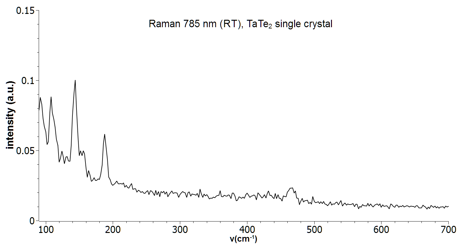Raman spectrum of a single crystal TaTe2. Measurement was performed with a 785 nm Raman system at room temperature.