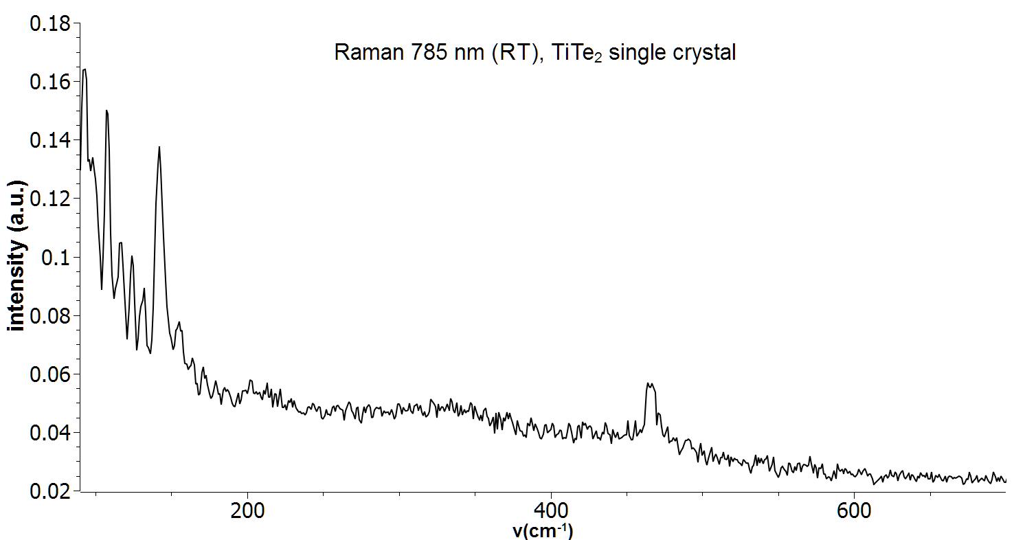 Raman spectrum of a single crystal TiTe2. Measurement was performed with a 785 nm Raman system at room temperature.