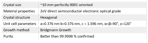 Unlike other sources, our GaSe crystals are best suited towards electronic and optical applications in 2D materials field. Our GaSe (gallium selenide) crystals have been synthesized through three different growth techniques, namely Bridgman growth, chemical vapor transport (CVT), and flux zone growth, to optimize grain sizes and reduce defect concentrations. Large grain sizes and controlled defects enable you to yield monolayers through simple exfoliation process with high yields, get high electronic mobility, and ideal exciton recombination times. By default, 2Dsemiconductors USA provides Bridgman growth GaSe crystals cut in 0001 direction ready for exfoliation. However, if your research needs CVT or flux zone grown GaSe please drop a note during check out.
