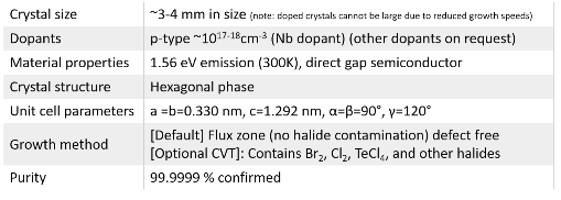 More than a decade of growth optimization in chemical vapor transport (CVT) as well as flux growth lead to our flawless MoSe2 crystals. Our p-type MoSe2 crystals are doped with Nb atoms at 1E17-5E18cm-3 range. These electronically doped vdW MoSe2 crystals are treated as gold standards in 2D materials field. MoSe2 crystals from 2Dsemiconductors are known for its superior valleytronic performance, perfect crystallization, defect free structure, extremely narrow PL bandwidths, clean PL spectra (free of bound exciton shoulders), and high carrier mobility. Thousands of scientific articles have cited us and used these crystals for scientific accuracy and clean signals. Please also see our n- and p-type MoSe2 crystals doped with Au, Re, Nb, or other transition metal atoms.