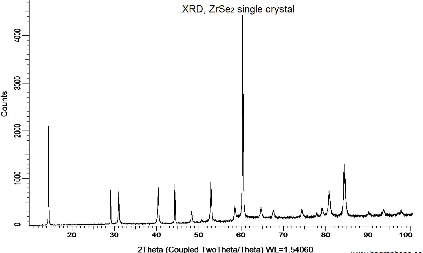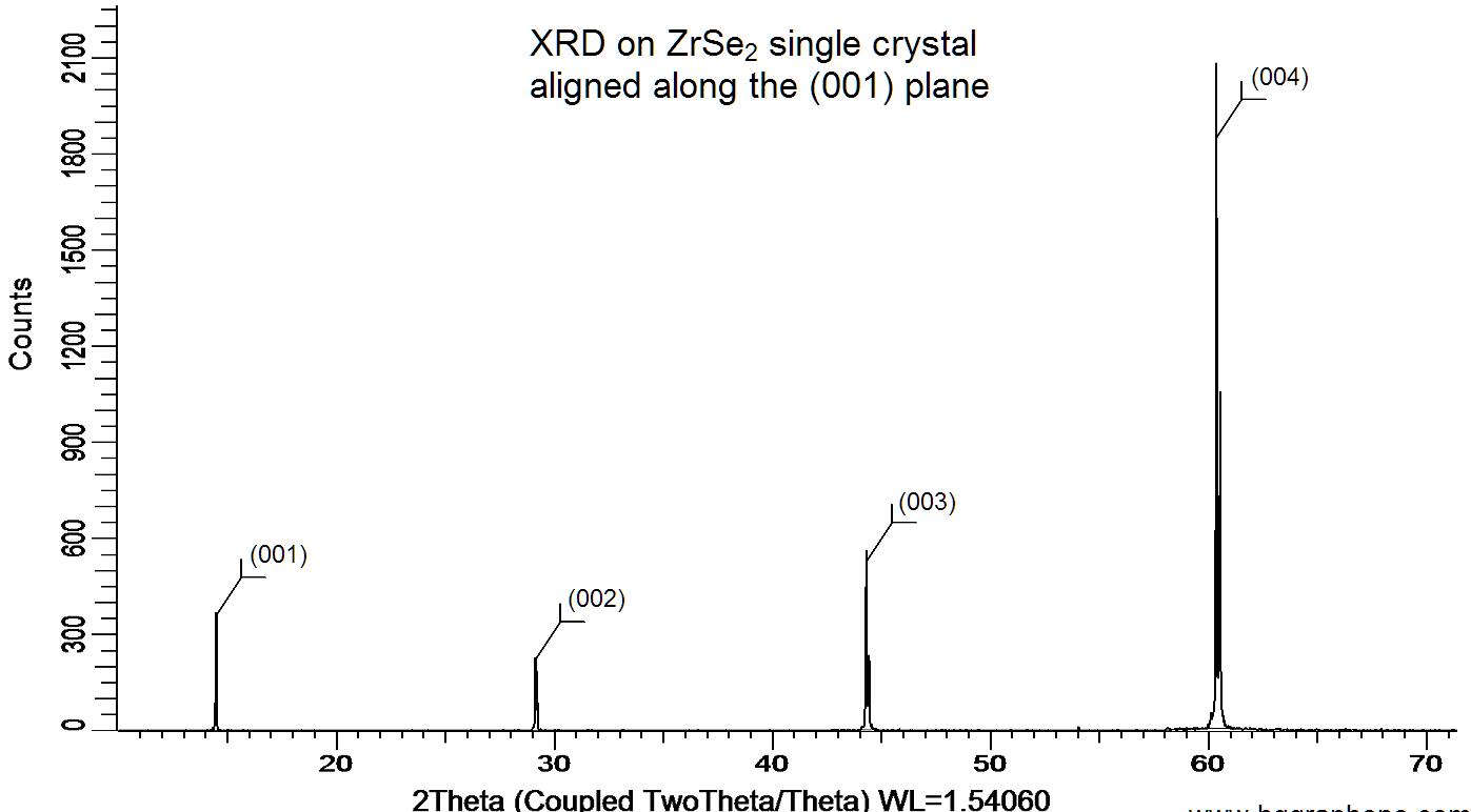 Powder X-ray diffraction (XRD) of a single crystal ZrSe2. X-ray diffraction was performed at room temperature using a D8 Venture Bruker.