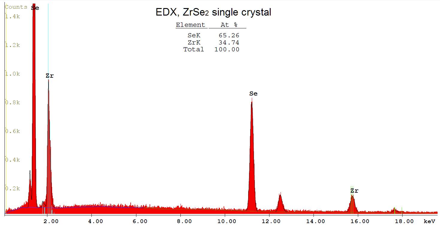 Stoichiometric analysis of a single crystal ZrSe2 by Energy-dispersive X-ray spectroscopy (EDX).