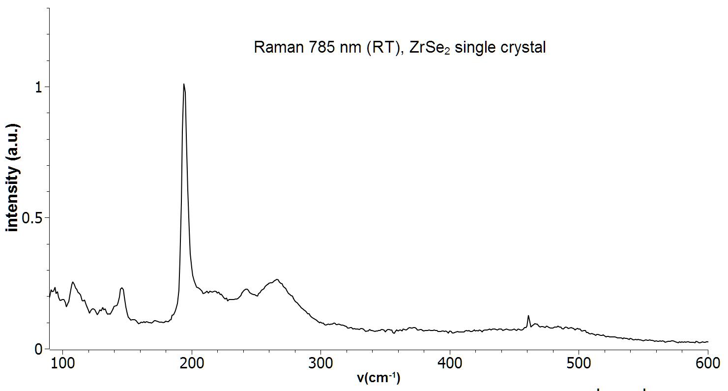 Raman spectrum of a single crystal ZrSe2. Measurement was performed with a 785 nm Raman system at room temperature.